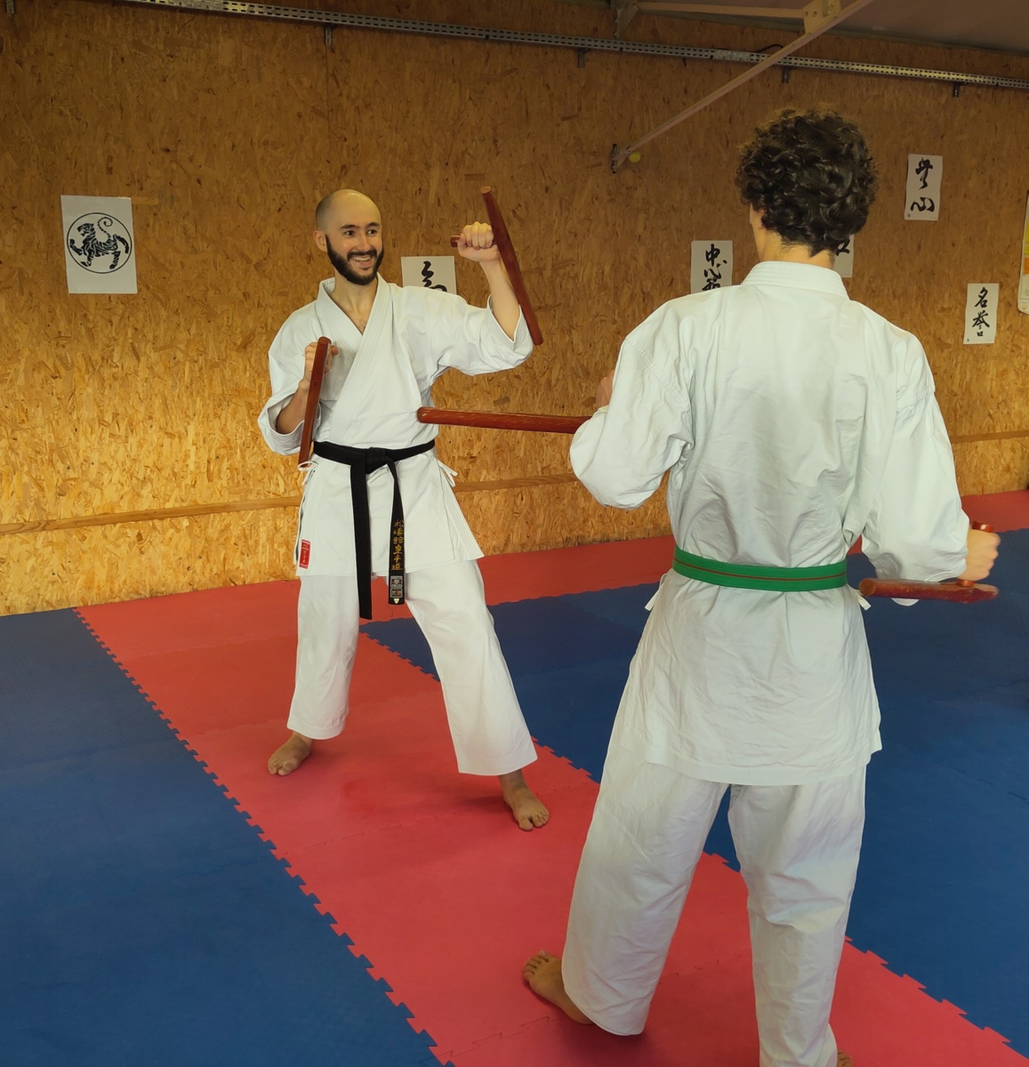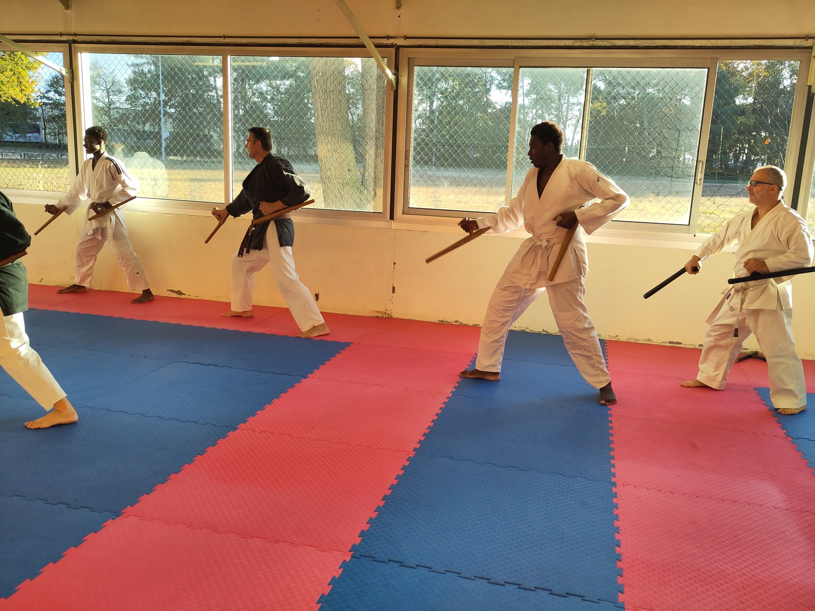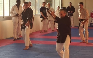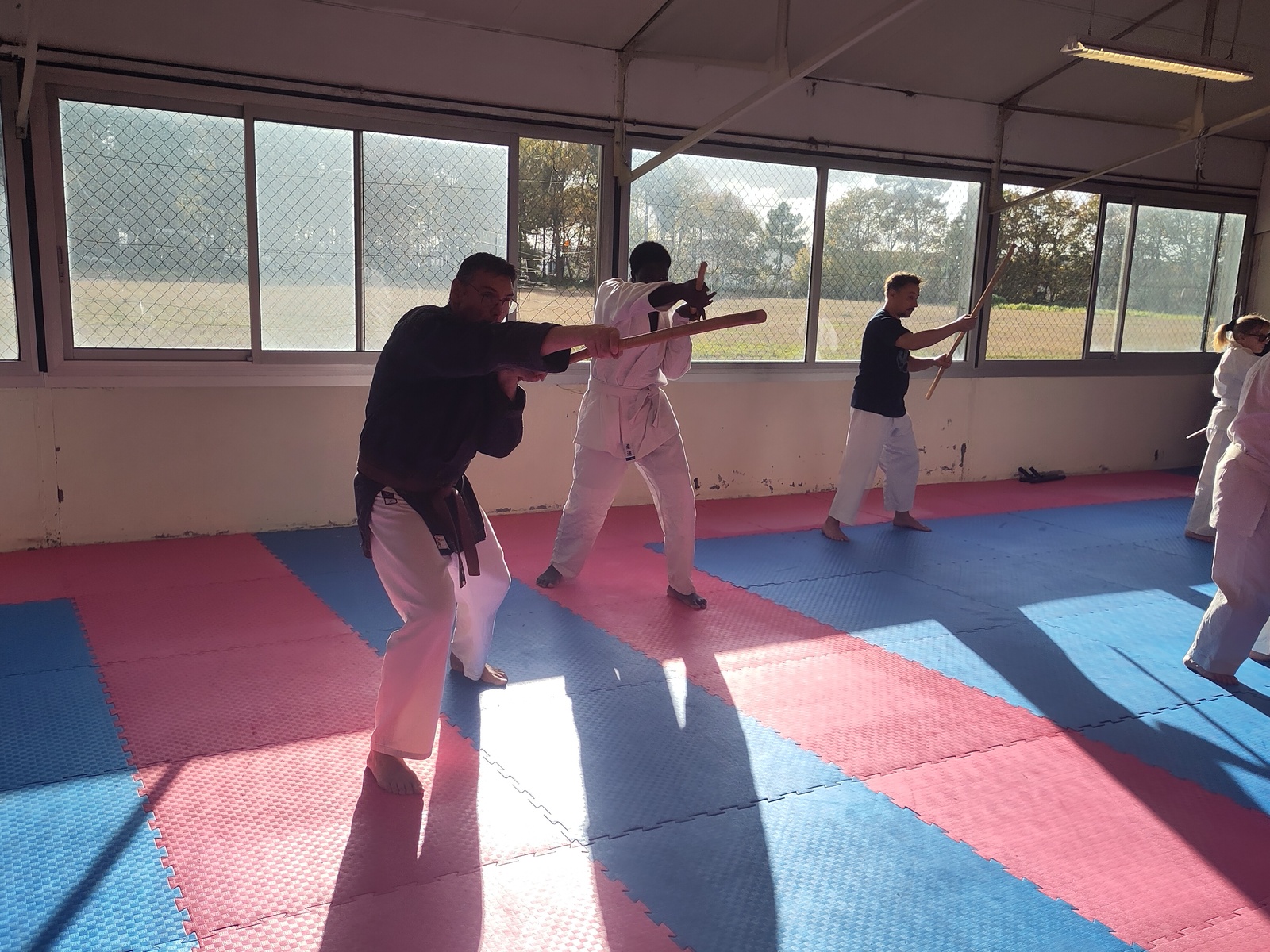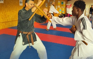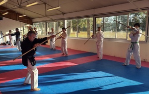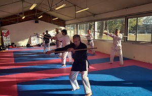Pendant deux heures, les participants ont pu s’initier aux techniques de base du Bo et du Tonfa : maniement, positions, déplacements, enchaînements.