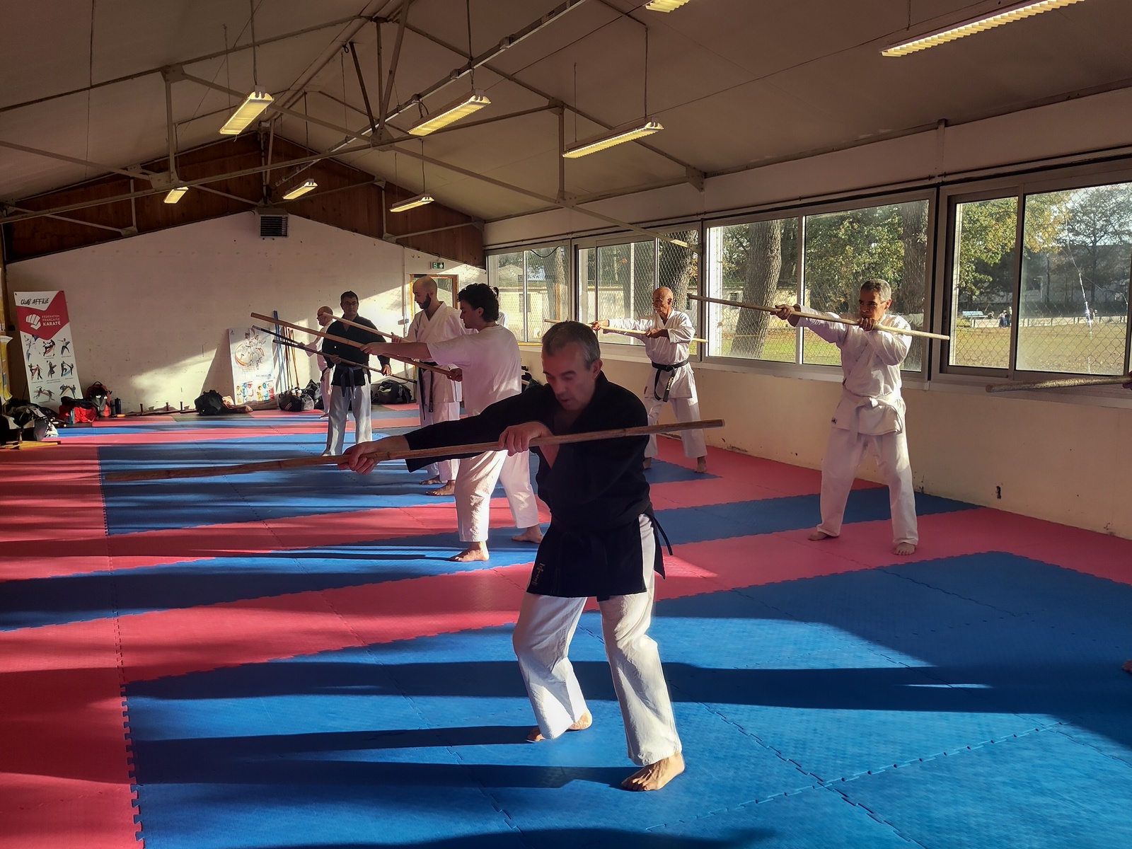 Le samedi 8 novembre, l’ASL-COP Karaté a organisé au dojo Saint-Exupéry son 𝐩𝐫𝐞𝐦𝐢𝐞𝐫 𝐬𝐭𝐚𝐠𝐞 𝐝’𝐢𝐧𝐢𝐭𝐢𝐚𝐭𝐢𝐨𝐧 𝐚𝐮 𝐊𝐨𝐛𝐮𝐝𝐨̄, consacré à la pratique du 𝑩𝒐̄ (bâton long) et du 𝑻𝒐𝒏𝒇𝒂 (bâton de police).